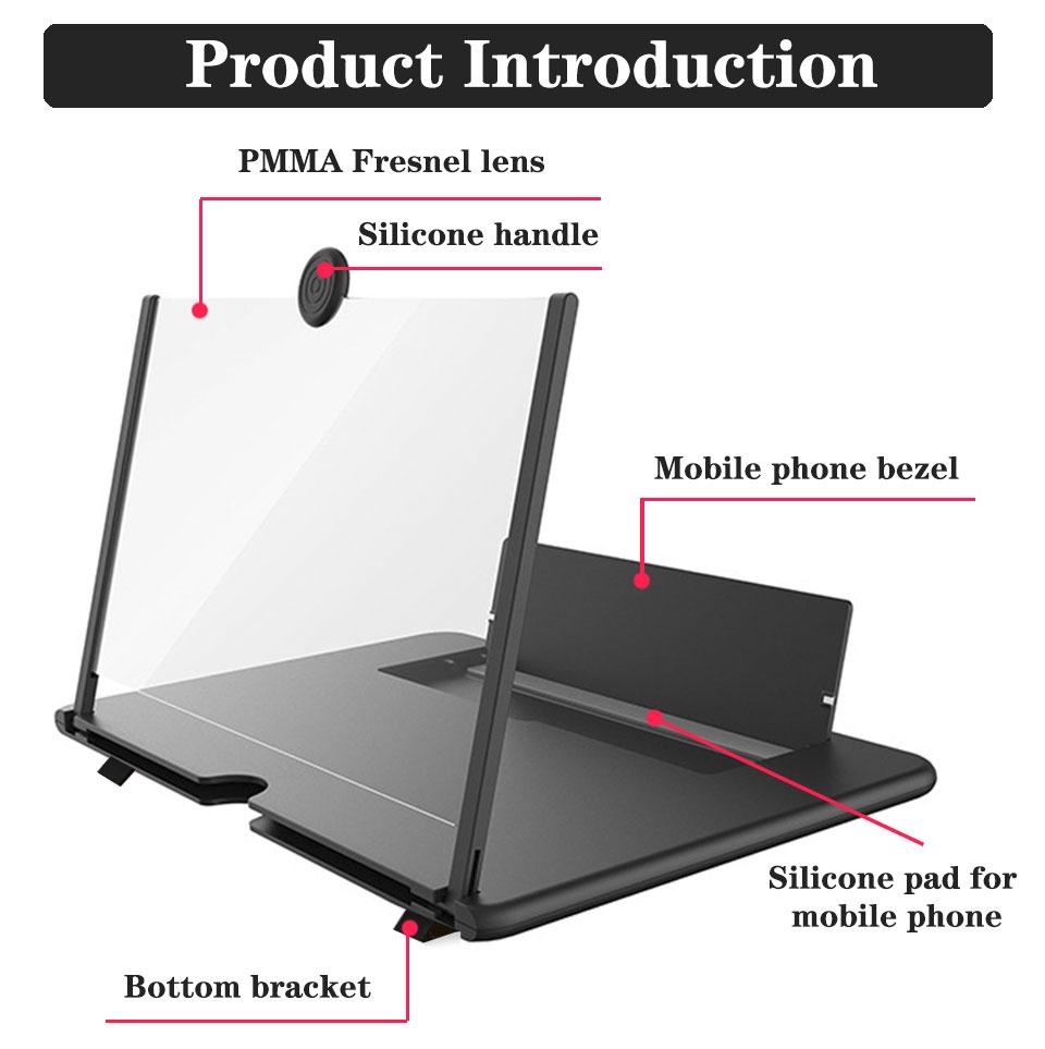 - 3D Screen Magnifier with phone holder enables you to watch films, videos or read with your mobile phone hands-free with a 3D high definition vision feeling that magnifies by up to 300% . Get yours Today!